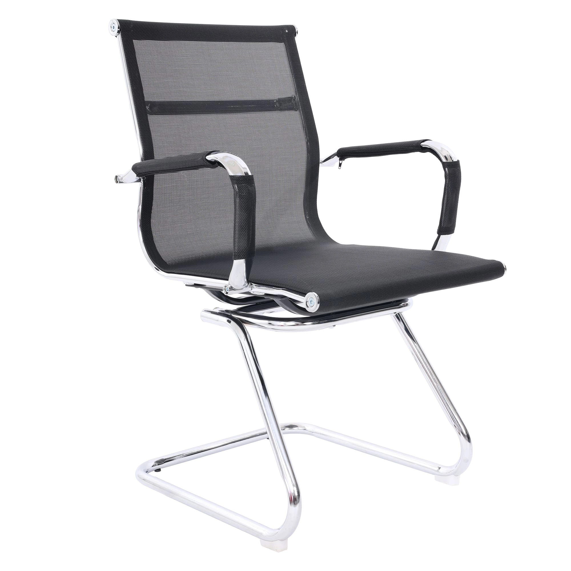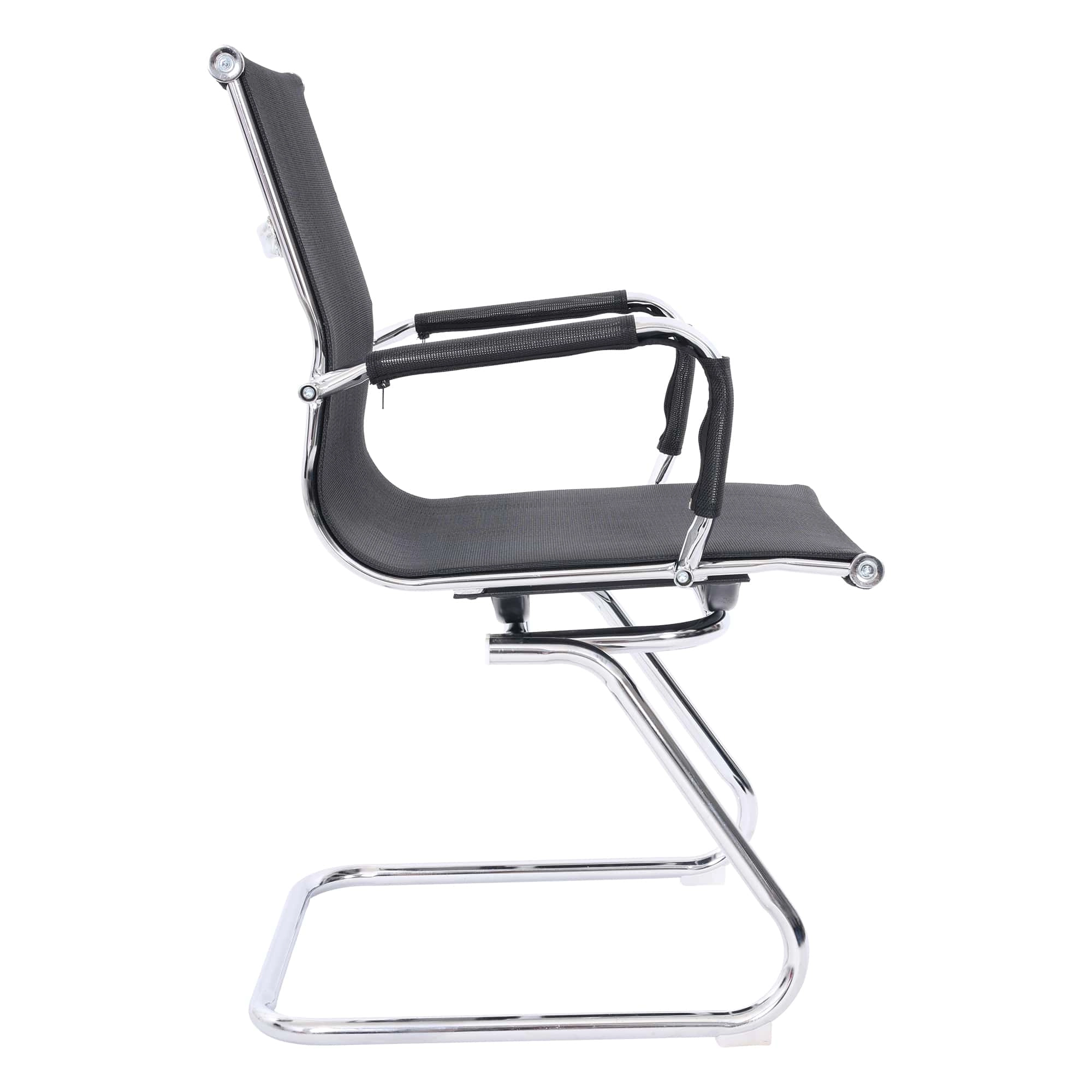 Pensadas para oferecer conforto aos visitantes, as cadeiras possuem assento e encosto em tela mesh preta, material que favorece a ventilação e o conforto térmico. A base fixa proporciona estabilidade, enquanto os apoios de braço em material resistente garantem suporte adicional. Com capacidade para suportar até 130 kg, as cadeiras são adequadas para diversos perfis de usuários.
