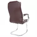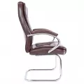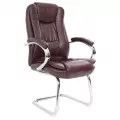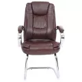 As cadeiras marrons para sala de espera possuem um formato robusto e com traços modernos. além disso, o modelo dessa cadeira é indicado para quem quer montar uma decoração elegante. As cadeiras desse conjunto possuem revestimento em couro sintético, base fixa em metal cromado e apoio estofado para os braços.