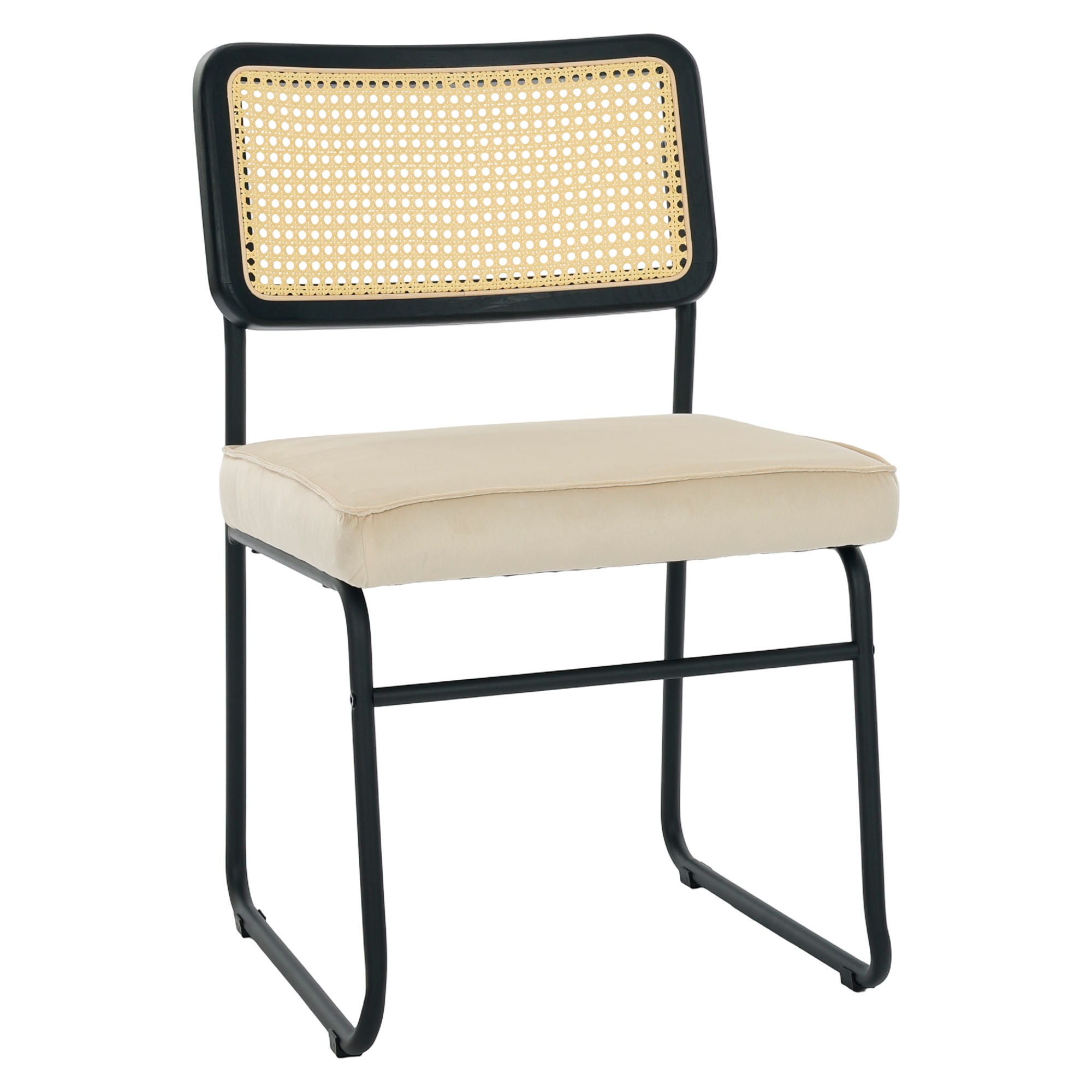 Par de Cadeiras Flexy Chaff Preta Assento Estofado e Encosto Tela Natural