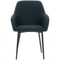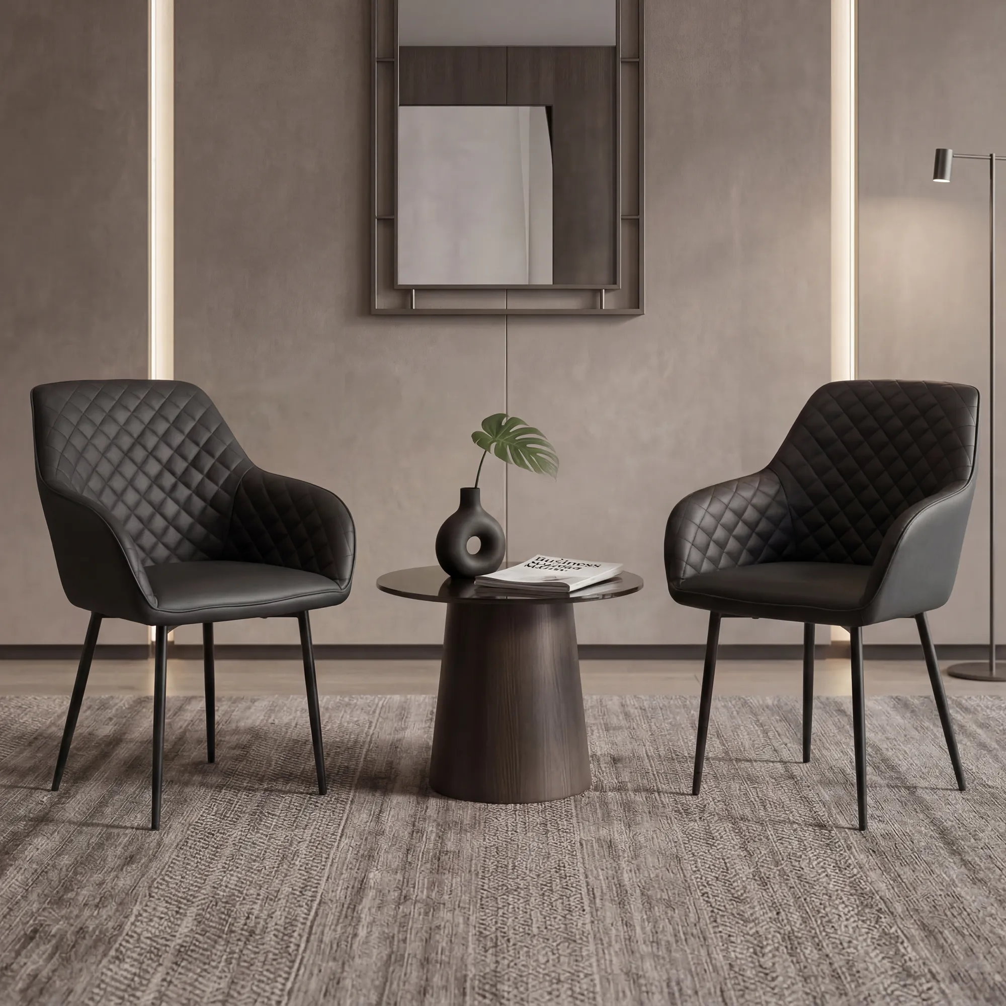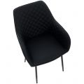 Com revestimento em PU, costuras decorativas que enriquecem o desenho e base em metal preto, a cadeira entrega um visual atual e de forte impacto estético. O resultado é uma peça que chama a atenção pela elegância, sem excessos, e contribui para uma ambientação mais premium.