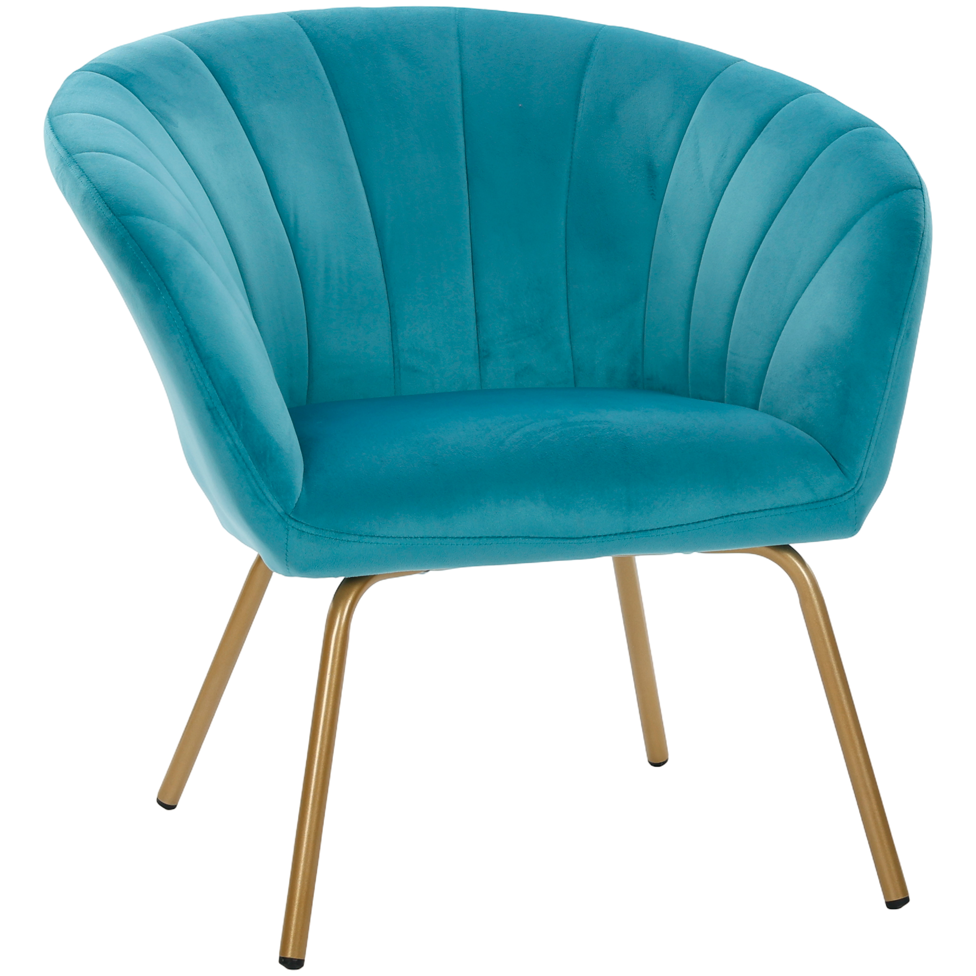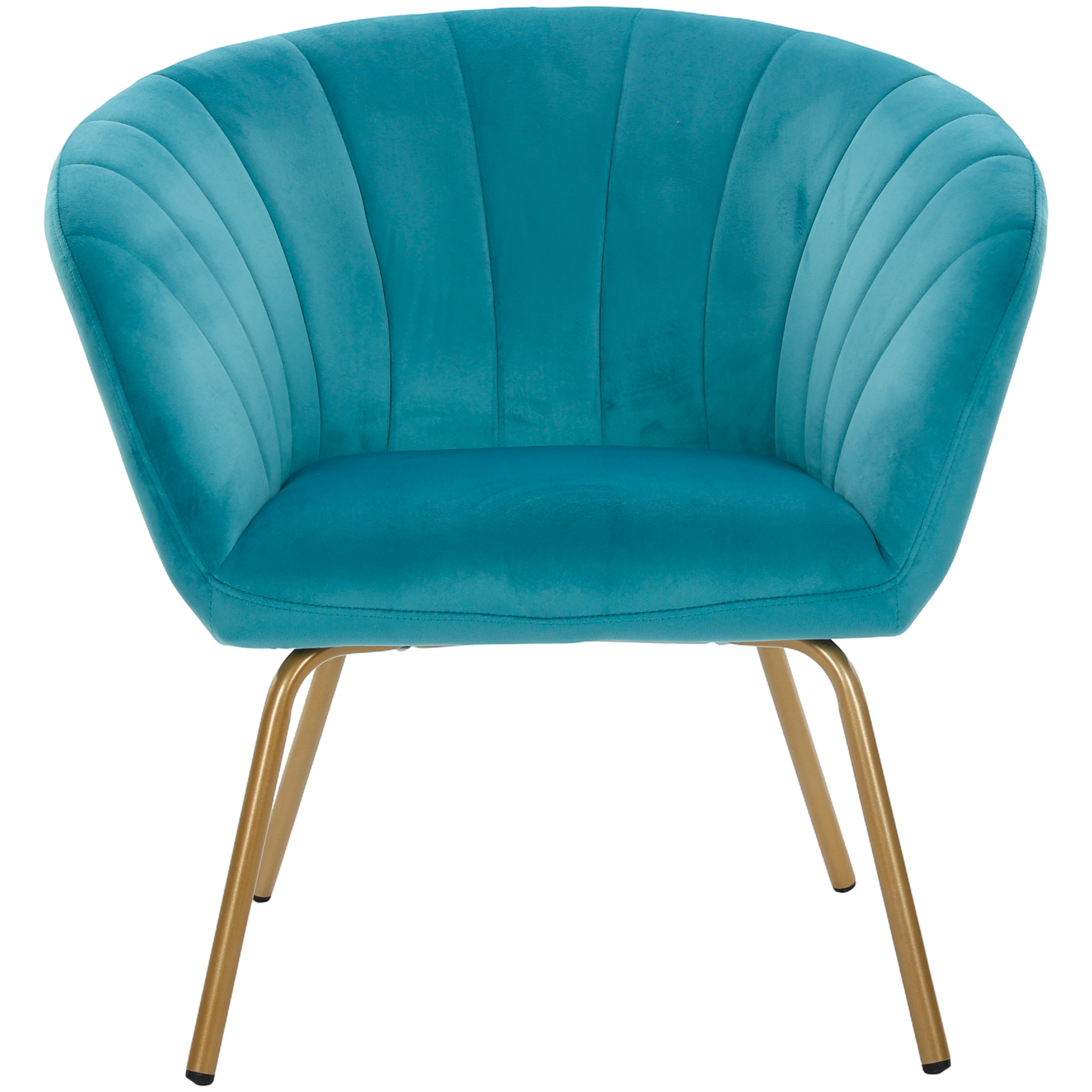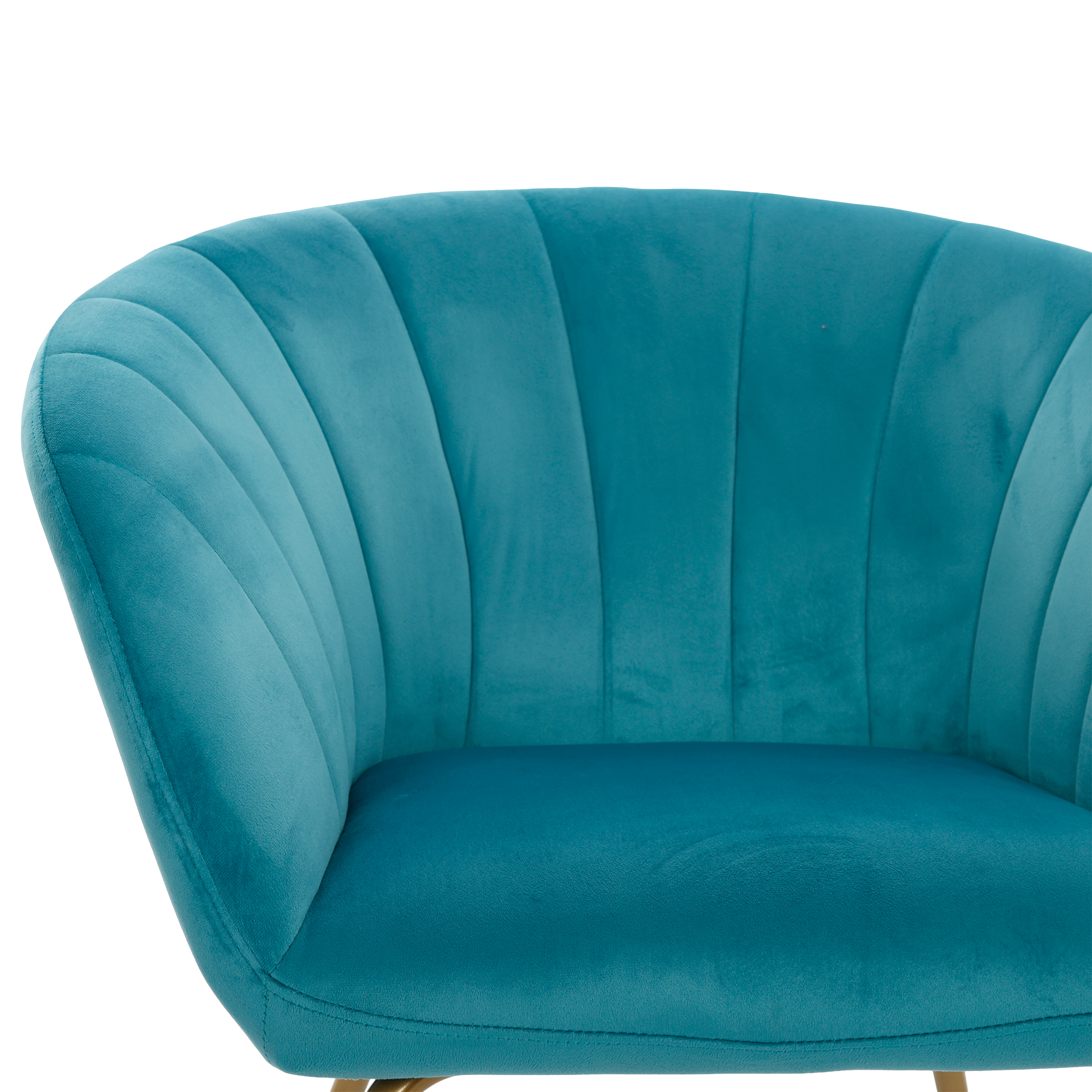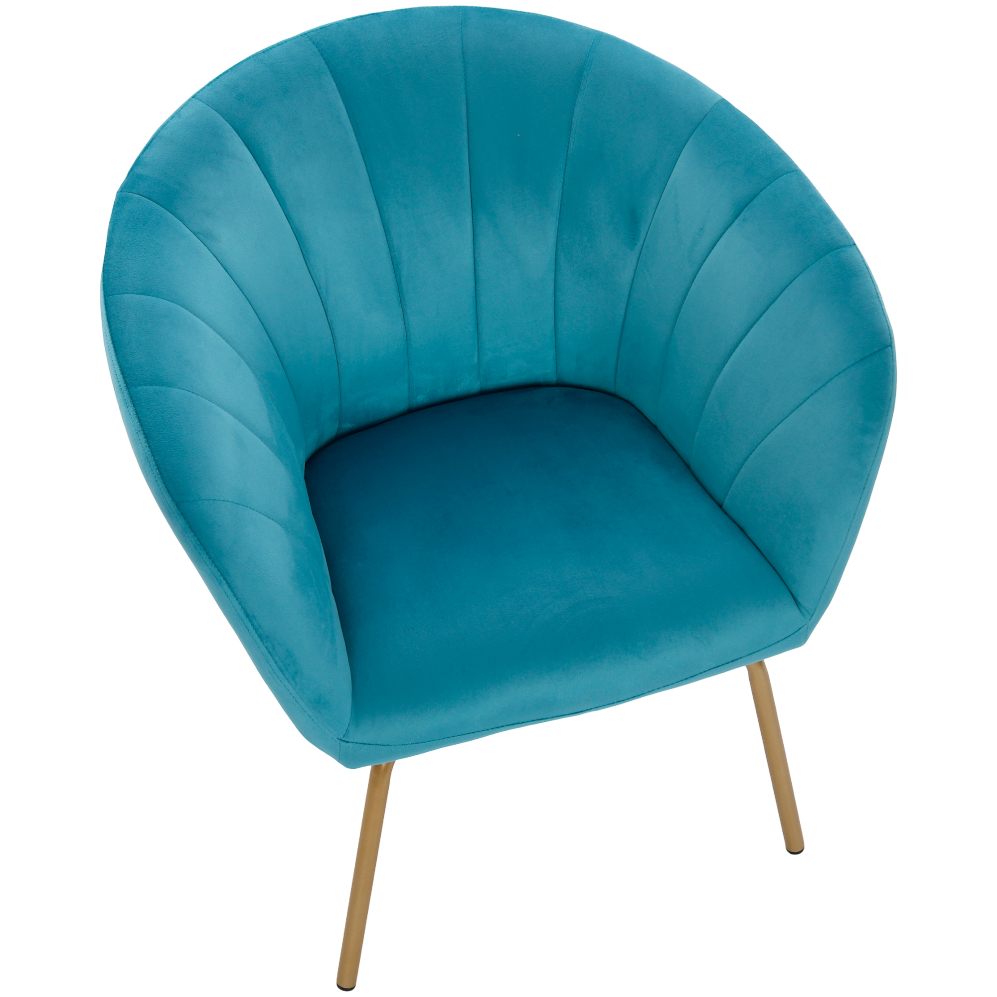 Poltrona Flexy Flora Pés Dourados e Tecido Velvet Azul Petróleo