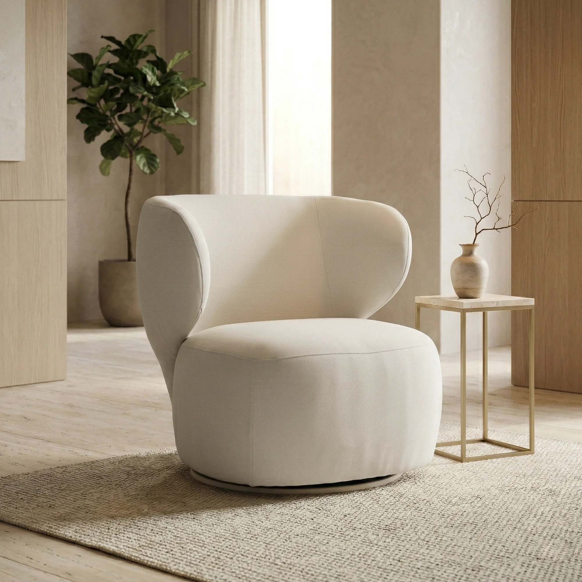 Poltrona Giratória Flexy Lunea Tecido Creme