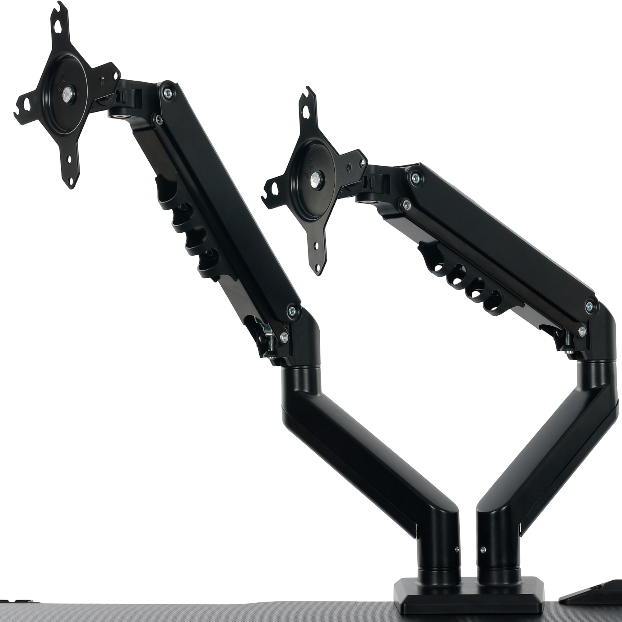 Movimentos suaves e precisos: braços articulados com pistão a gás para regulagem fácil, com giro e posicionamento do jeito que você precisa.