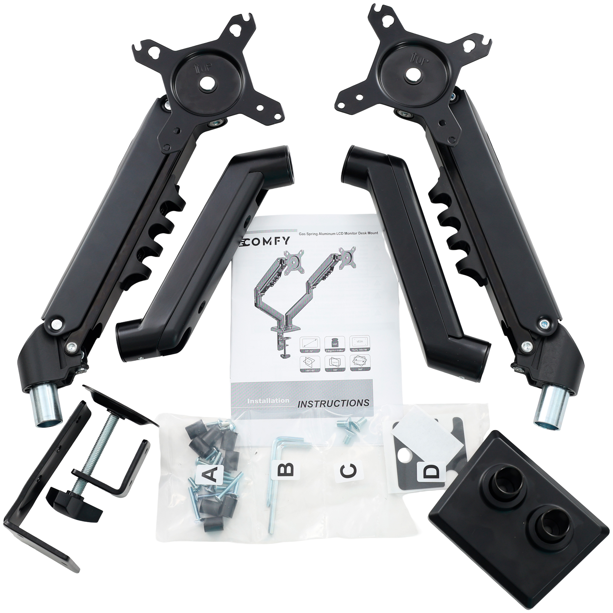 Suporte Ergolift Preto Articulado Pistão a Gás para 2 Monitores VESA 15" a 32" Até 9kg